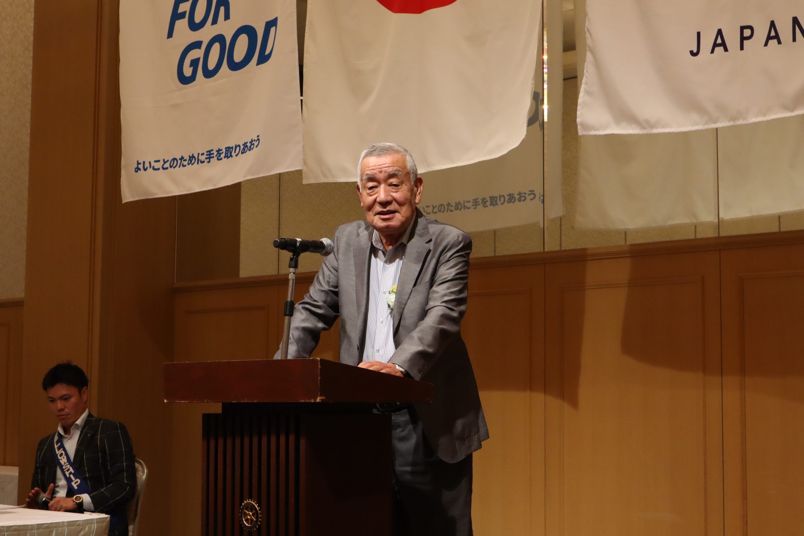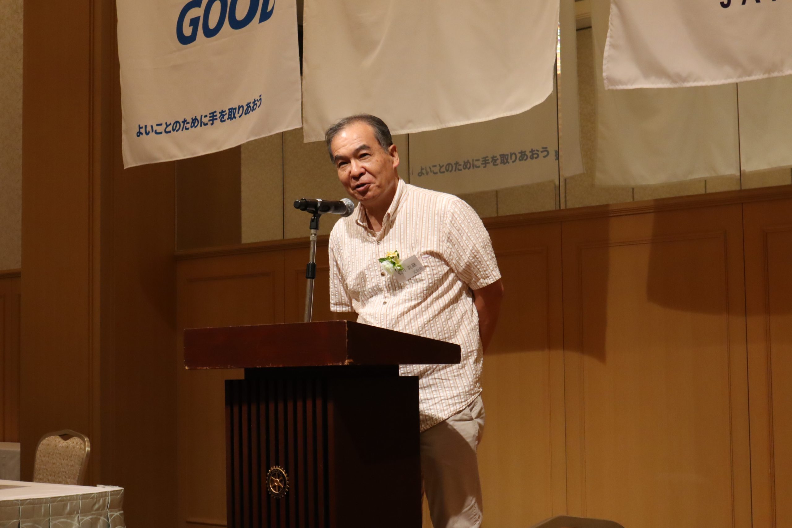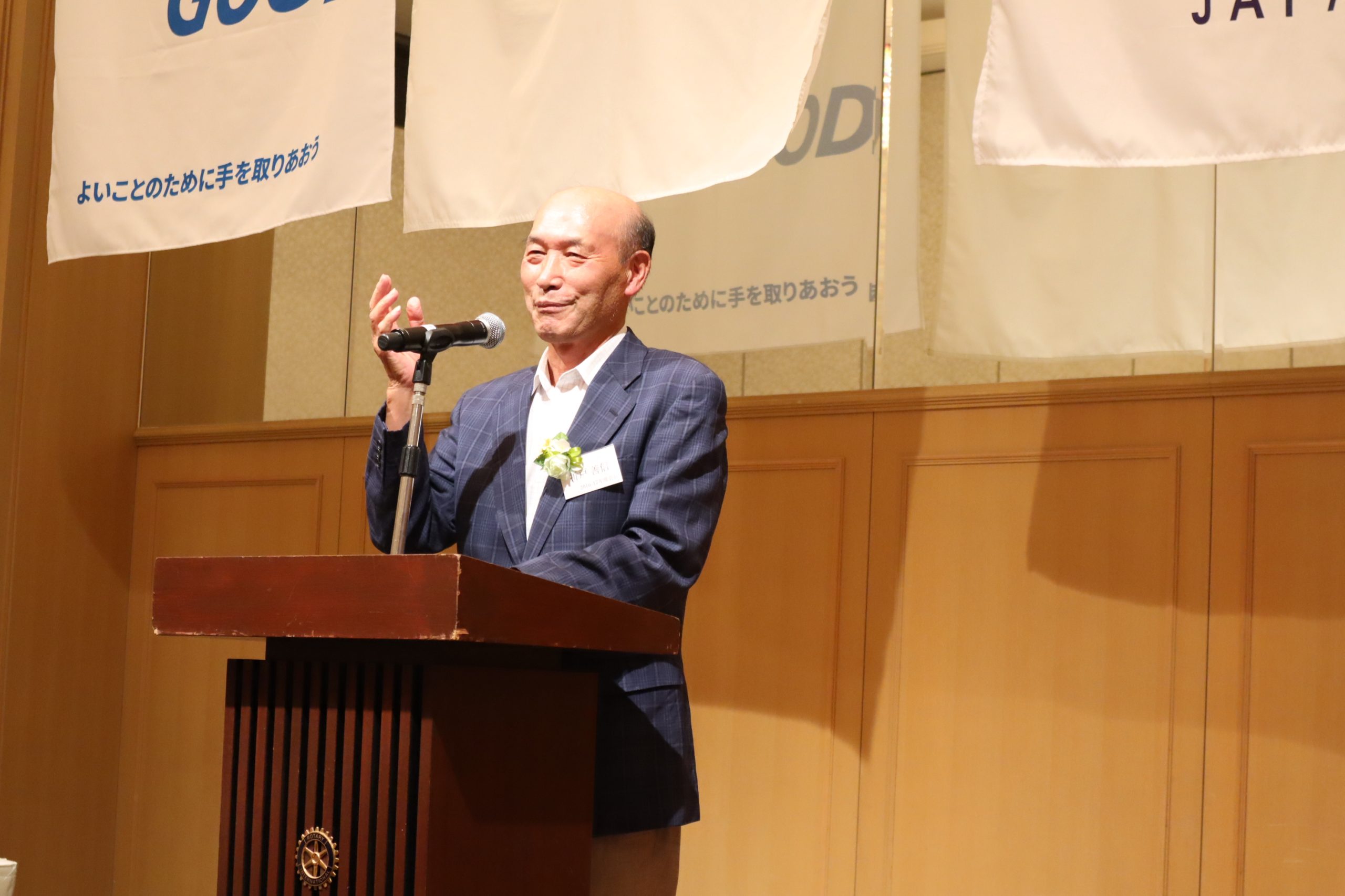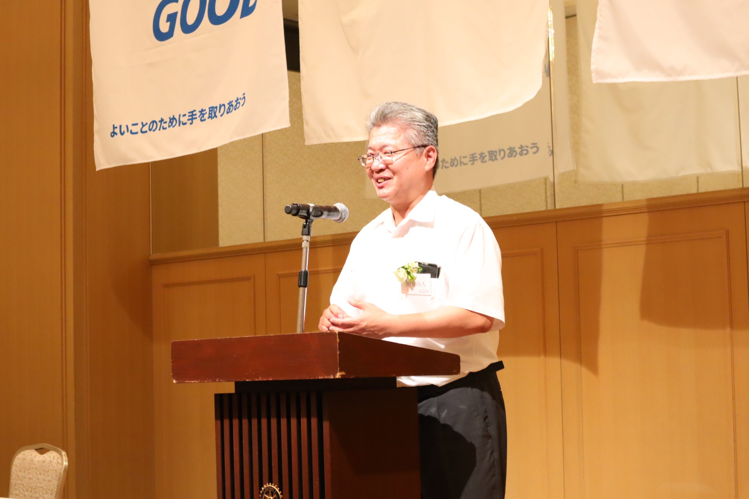 ロータリーの精神は、会員のみならず、そのご家族のご理解とご支援によって支えられてきたことを、改めて強く感じております。二千回という節目は、決して偶然に達成されたものではございません。先人が積み重ねてこられた日々の歩みの証であり、我がクラブの誇りでございます。この伝統を次代に継ぎ、三千回、四千回と未来へと歩みを進めることこそ、私たち現役会員に課せられた責務であると存じます。どうぞ本日の記念例会が、これまでの歴史を改めて振り返り、そして未来への一層の発展を誓う機会となりますことを祈念申し上げ、私のご挨拶とさせていただきます。本日は誠にありがとうございます。